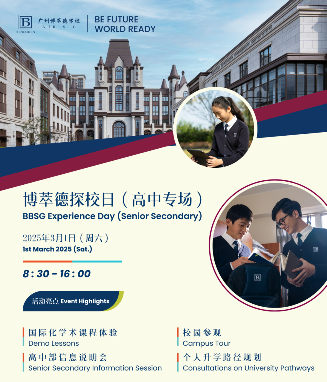 3月1日(周六),博萃德高中部將啟動首場探校日,活動報名現已開放。