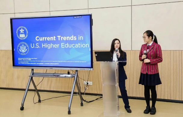 美領館教育交流中心舉辦的“五步邁向美國留學”講座,則聚焦赴美留學官方資訊,著重解讀了赴美留學的五步流程,并深入剖析了美國國際教育現狀、院校選擇建議、留學政策和簽證流程,幫助赴美學生梳理清晰的規劃脈絡。此外,“英美留學的真相”講座同樣精彩。該講座不僅全面介紹了英美大學及其教育體系,還針對院校選擇、背景提升、語言規劃、文書準備等關鍵內容進行了詳細的闡釋,幫助學生與家長深入了解英美留學的各個方面。
