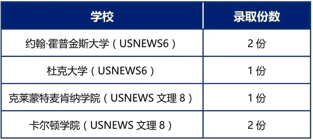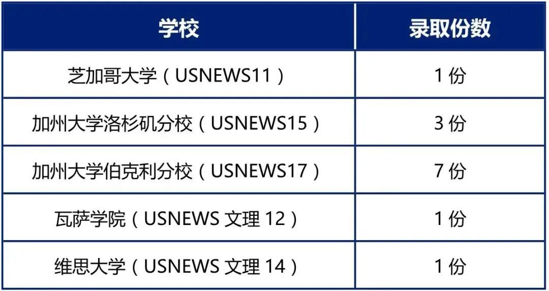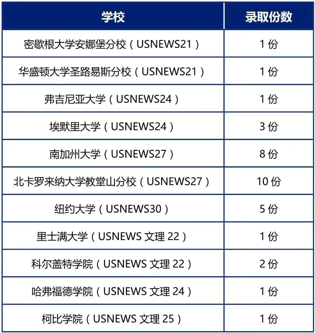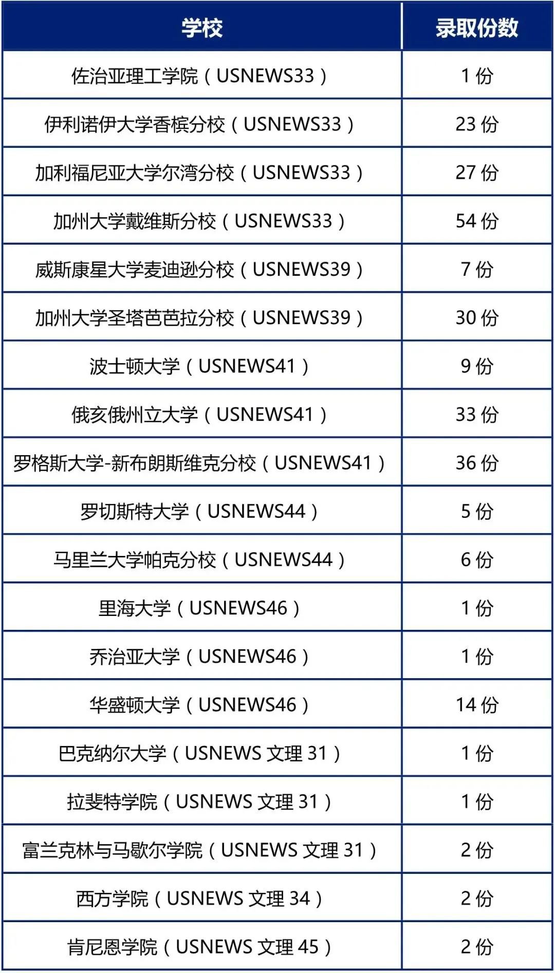 截至最新統計,該校學子在美國本科申請中表現亮眼: