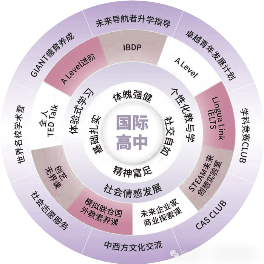 其中,國際高中以IBDP/ALevel雙軌課程為學術縱貫軸,輔以模聯社商實踐營、STEAM創新智造坊橫向拓能,建構學術分層進階和綜合素養躍遷雙驅動引擎;全人浸潤式成長貫穿升學導航、學術領航、德育護航的三航融育體系,依托1V1生涯導師鏈、全球頂尖學術觸點及公益領袖計劃,淬煉社會責任擔當與跨文化格局。