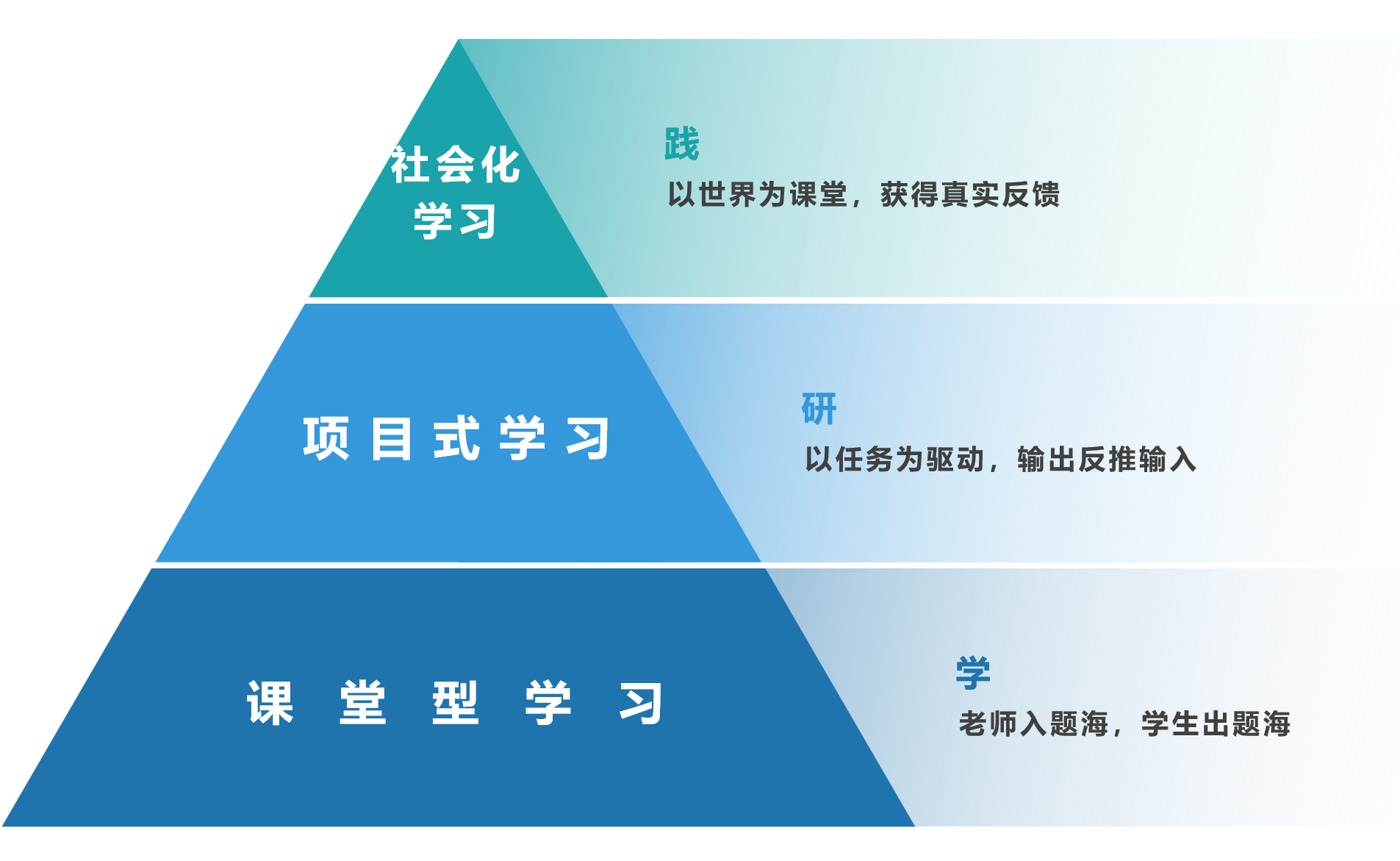 項目創新性地采用以真實情境為基點、適配本土學生成長的大概念教學法。以此為紐帶,有機融合課堂式學習、項目式學習(PBL)和社會化學習,為學生量身定制通往全球頂尖高校的成長路徑,全面提升核心素養,實現與世界教育的融會貫通。