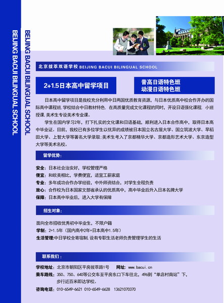 北京拔萃雙語學校日本高中留學項目是我校充分利用中日兩國優...