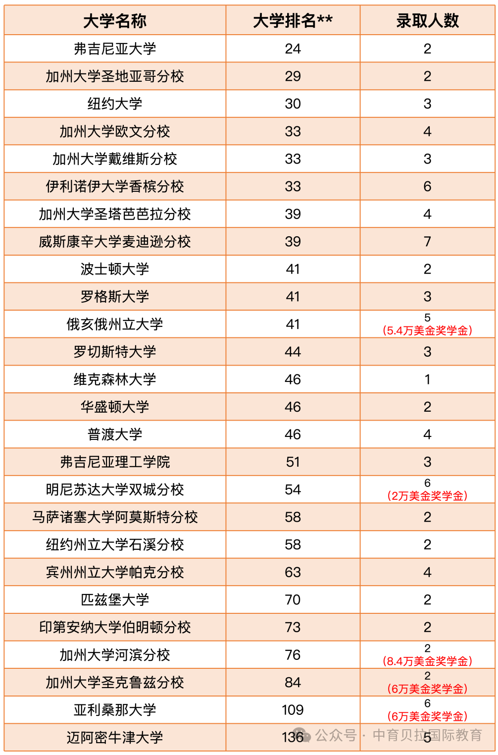 ·公立名校集中爆發:威斯康辛麥迪遜(TOP39)7枚、俄亥俄州立大學(TOP41)5枚(且獲得$5.4萬獎學金)