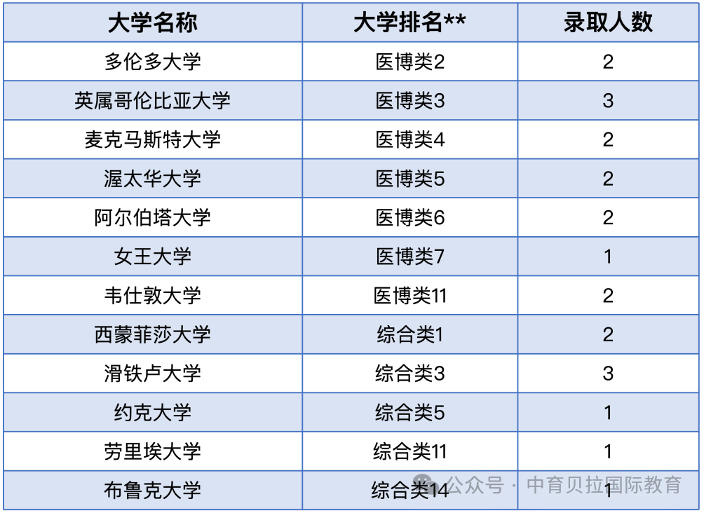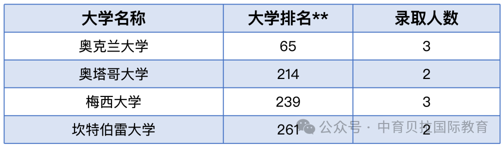 ·名校批量錄取:紐約大學(TOP30)3枚、加州大學圣地亞哥分校(TOP29)2枚、加州大學歐文分校&加州大學戴維斯分校&伊利諾伊大學香檳分校(TOP33)共計13枚