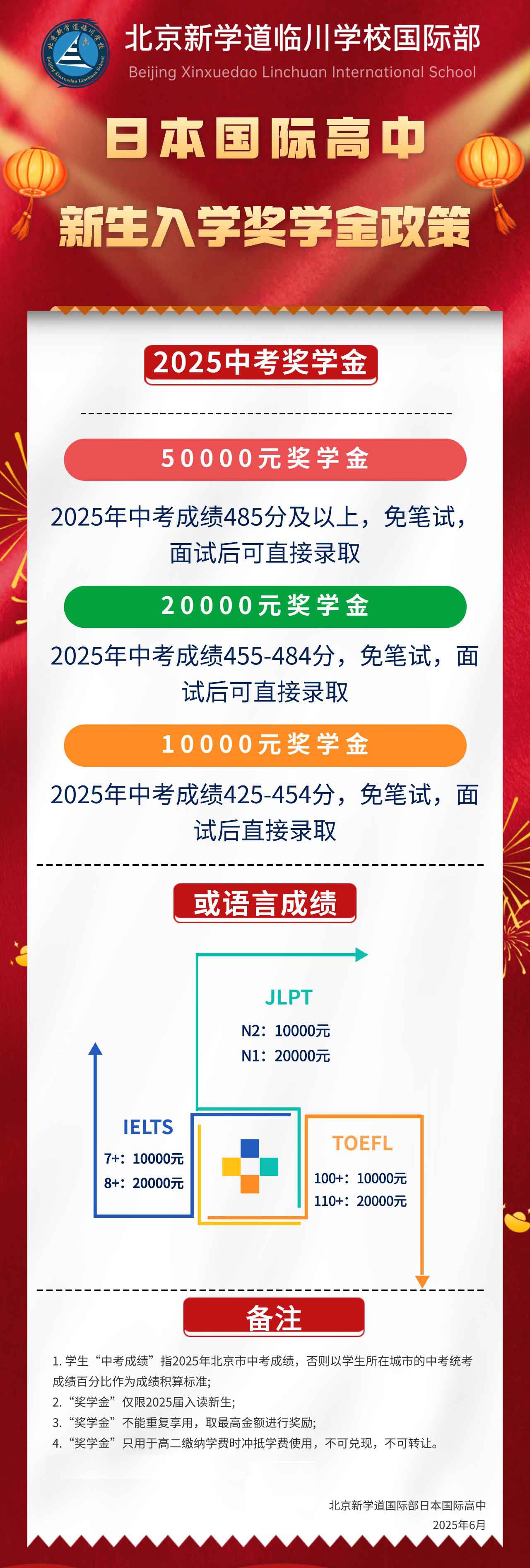 通過(guò)以上獎(jiǎng)學(xué)金政策,北京新學(xué)道臨川學(xué)校國(guó)際部旨在激勵(lì)更多優(yōu)秀學(xué)生加入日本國(guó)際高中,共同創(chuàng)造更加輝煌的未來(lái)。