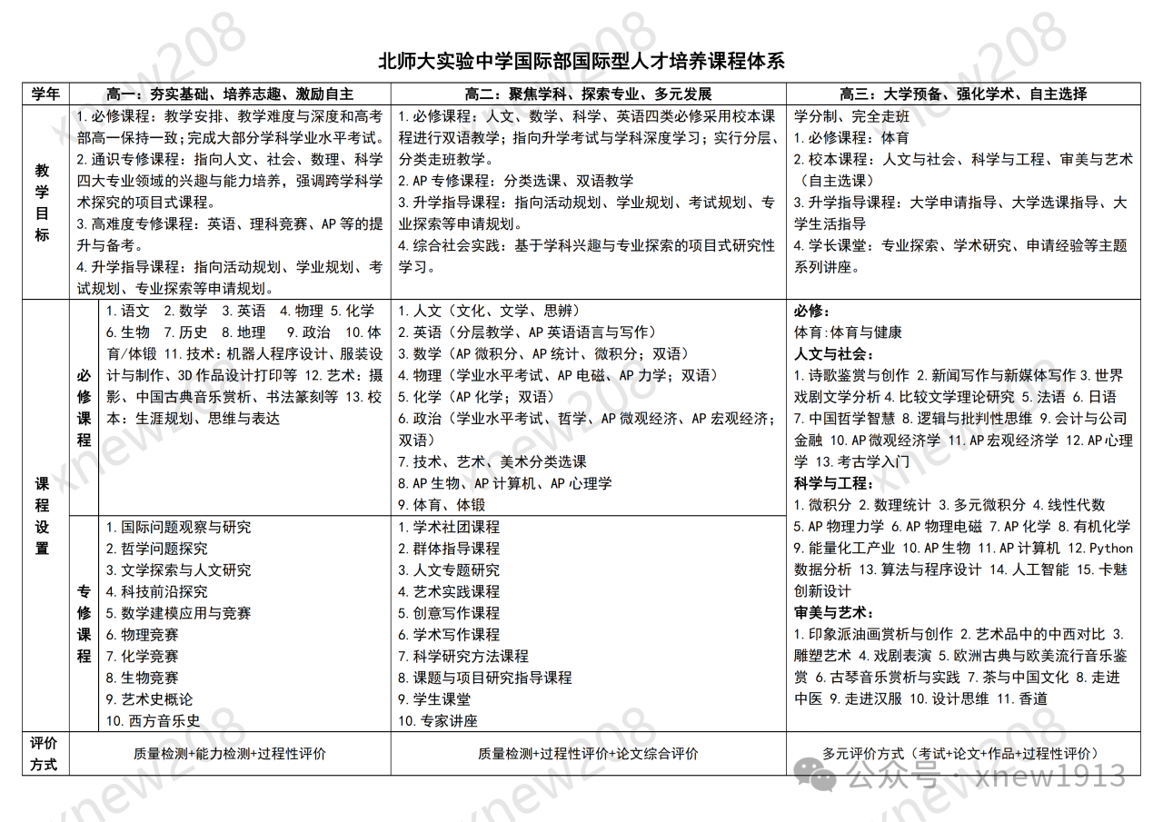 具體北師大實驗中學國際部人才培養課程體系如下表所示: