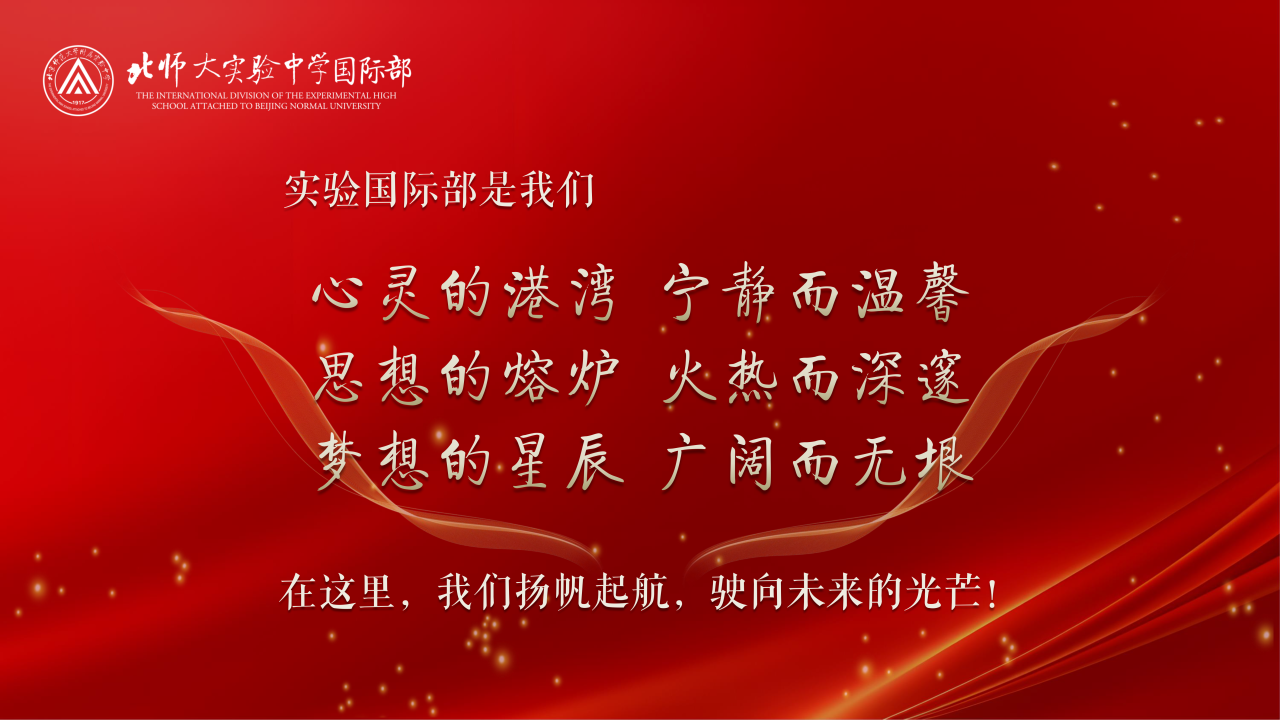 北師大實驗中學國際部是心靈的港灣、思想的熔爐、夢想的星辰。在這里,同學們以創新之翼翱翔于學術蒼穹,在寧靜溫馨的氛圍中,點燃思想的火花,追逐無垠的夢想。