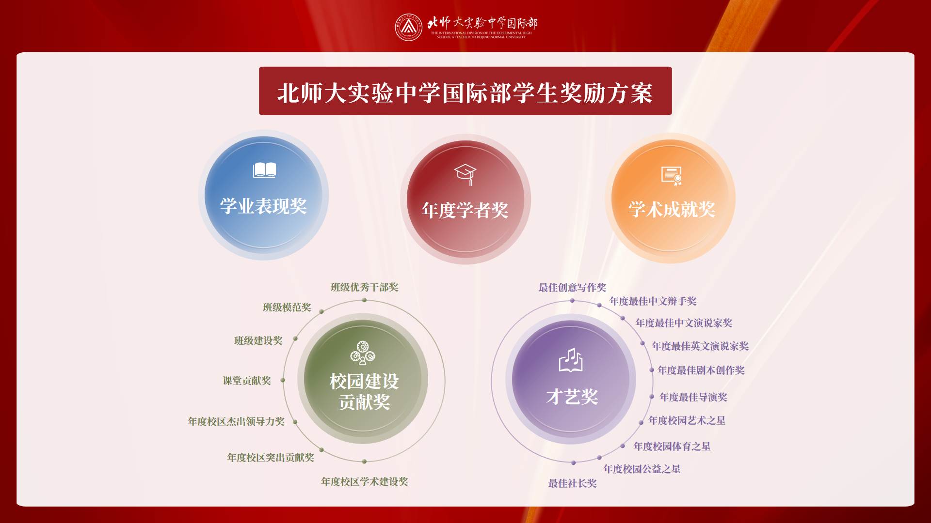 國際部設立學業表現獎、學術成就獎、校區學術建設獎和才藝獎等多種獎勵,激勵學生在學業、學術、社團活動等方面全面發展。