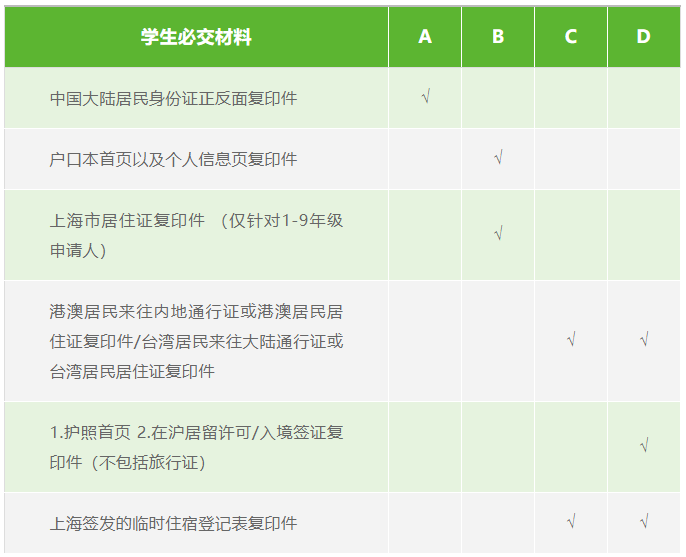 根據上海市教委的要求,有意向入讀包玉剛實驗學校的學生及家長需參考本表根據各自的身份情況準備相關材料并于在線登記表中上傳。