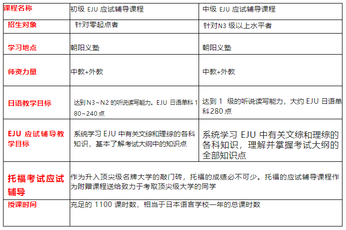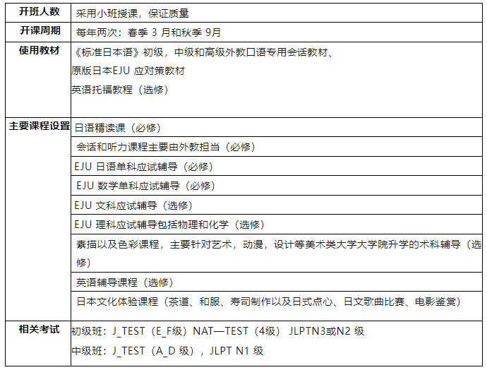 學校依托中日優秀教師團隊,在高中課程體系的基礎上,融合日本留學生統一考試(簡稱EJU)課程,形成了成功留學日本的教育體系。