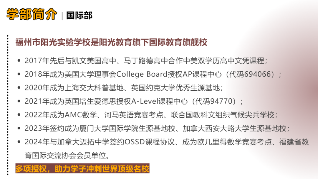 學(xué)部簡介|國際部 福州市陽光實(shí)驗(yàn)學(xué)校是陽光教育旗下國際教育...