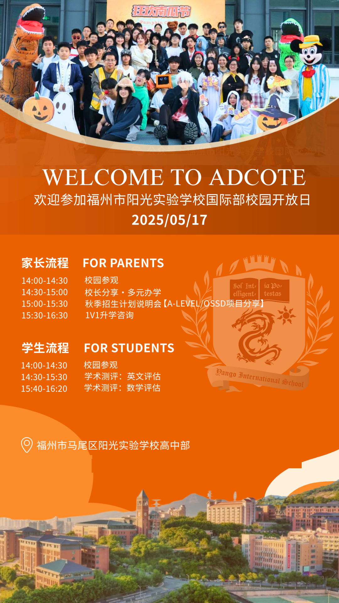 您好!我校國際部誠摯邀請您于2025年5月17日(周六)14:00參加本年度秋季招生開放日活動(dòng)。
