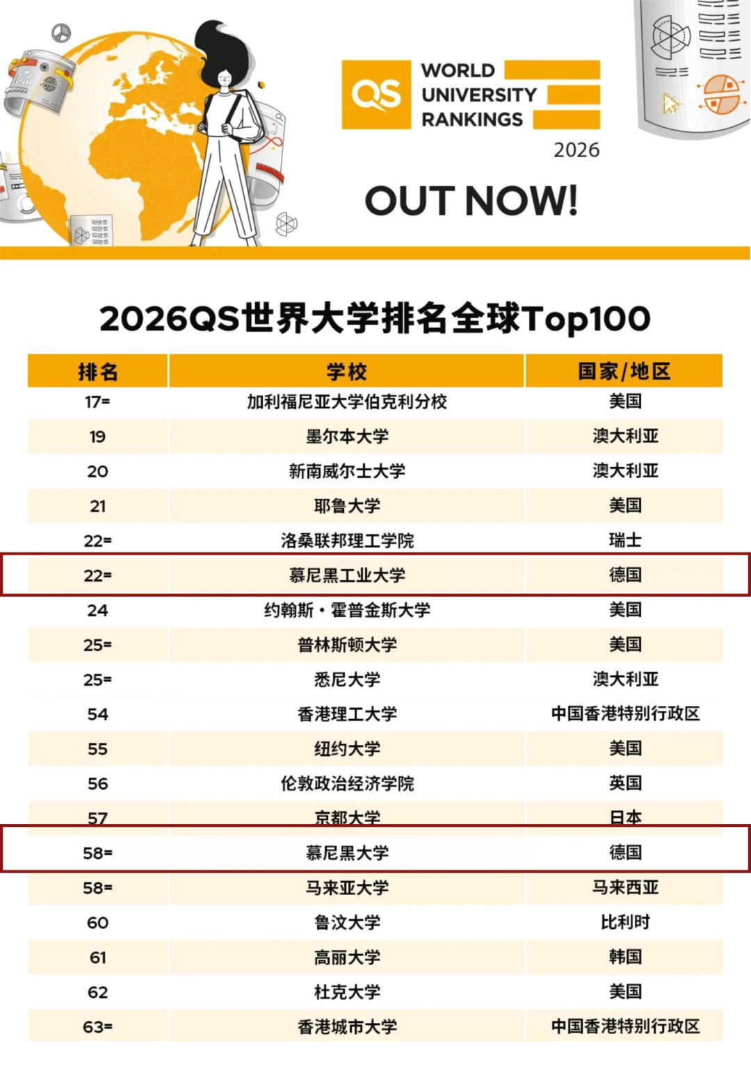 在2026年QS世界大學排名中,德國名校再次吸引全球目光,慕尼黑工業大學(22名)、慕尼黑大學(58名)等穩居世界百強,亞琛工業大學、柏林工業大學等理工強校表現不俗。對于眾多留學生而言,赴德留學極具性價比,并能獲得一流教育資源、廣闊的職業發展空間與多樣化的未來可能。