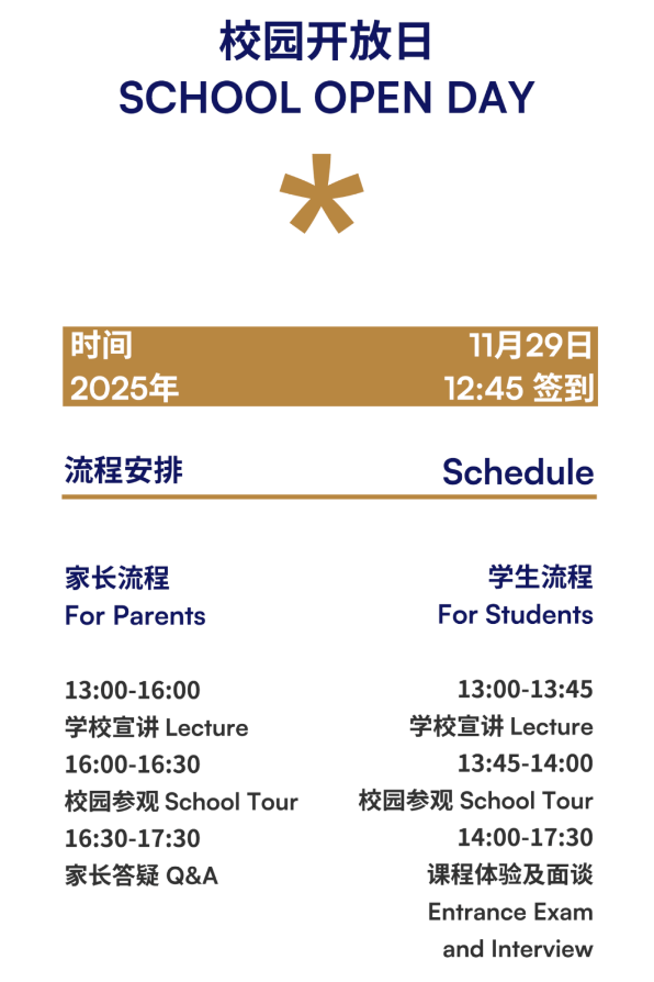 我校 OPEN DAY 校園日將于11月29日正式向廣大家庭開放。歡迎有意向了解萬科雙語高中的家長報名登記,聽一聽我們對于校訓“DARE TO DREAM”的理解,看一看孩子未來學習的地方長什么樣,聊一聊孩子那并非是遙遠的未來。