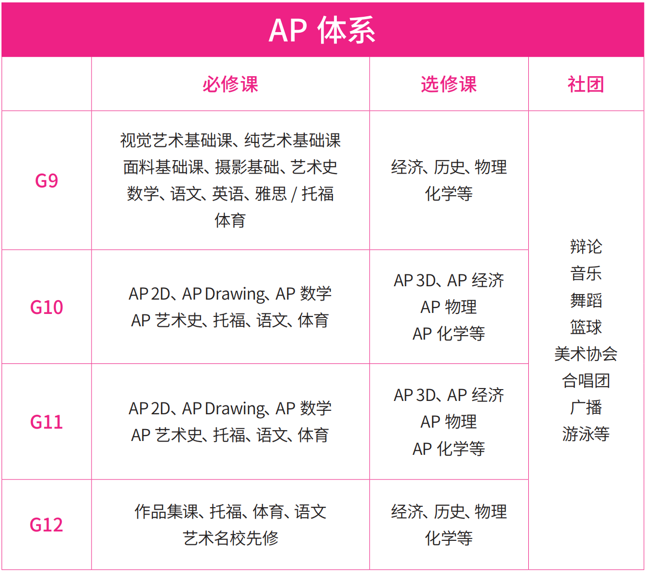 斯芬克國際藝術高中升學路徑規劃,結合學生自身優勢與院校的特點,重點提升GPA、藝術能力基礎、背景活動等錄取要素,早規劃、多元化 、強關聯,匹配最佳的目標院校。