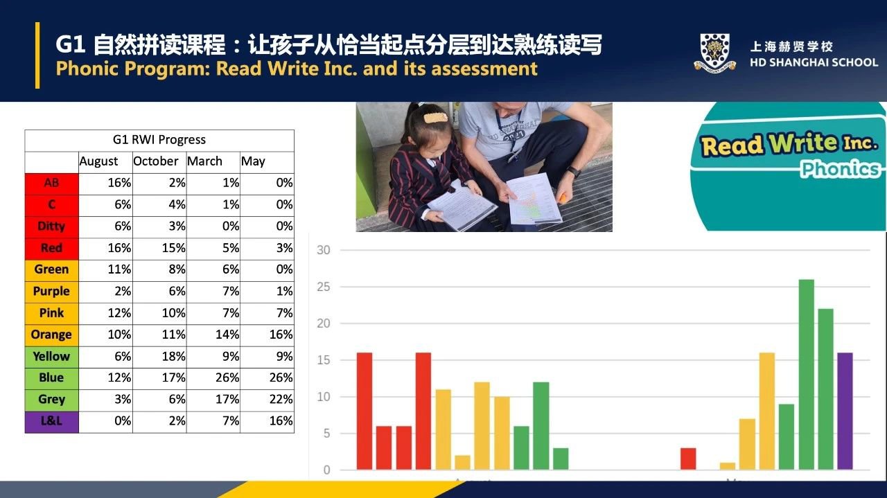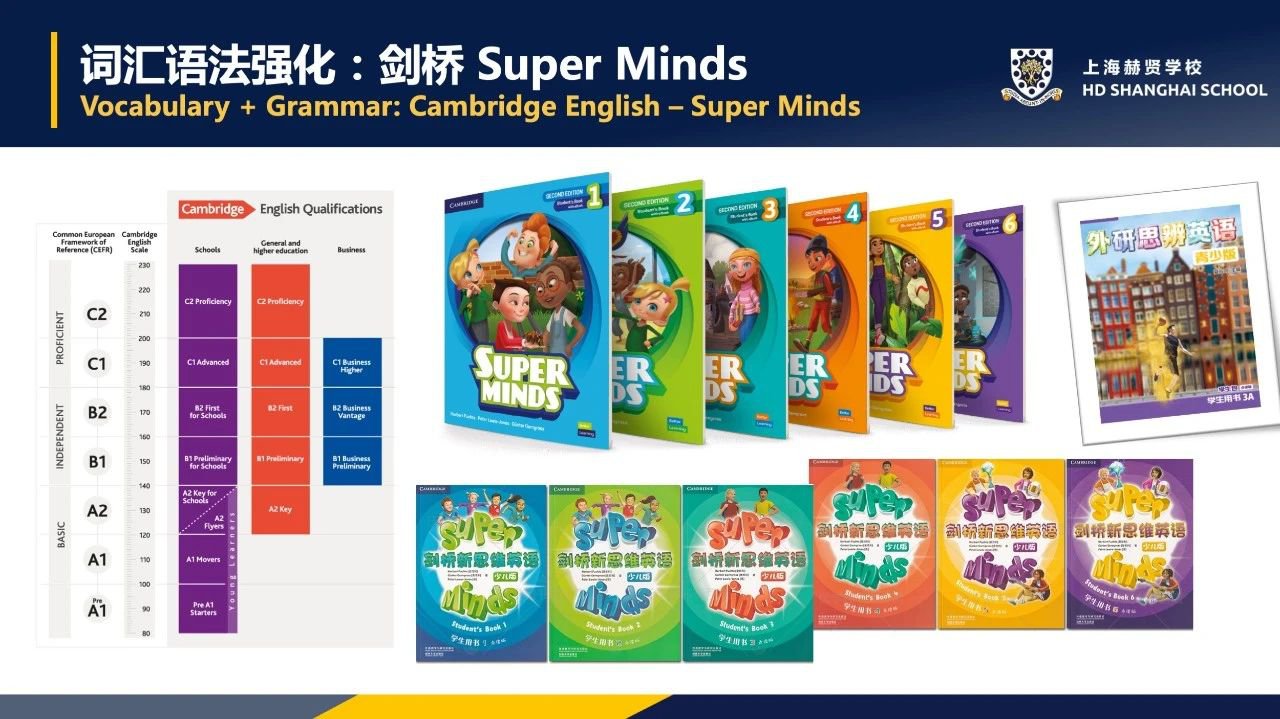 我們按照英國國家標準設計了赫賢小學的英語課程,包括原著讀寫、劍橋體系的Superminds、低年級自然拼讀三大模塊;