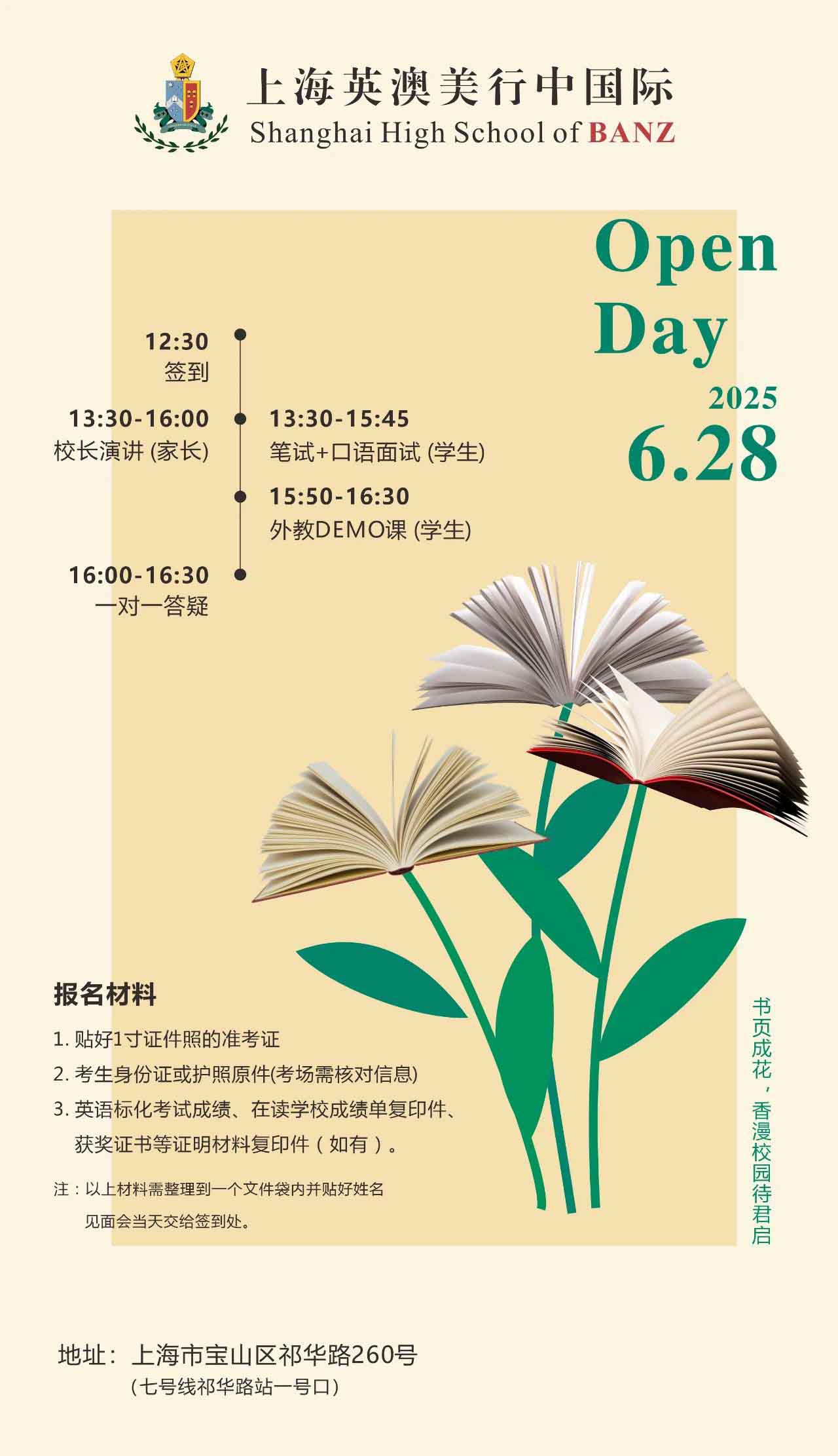 學校名稱: 上海英澳美行中國際 開放日日期: 2025年6月28日 活...