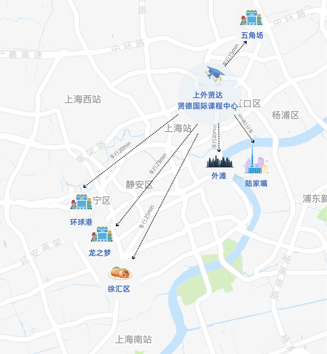 此外,學校距離徐匯區(35分鐘)、人民廣場外灘(20分鐘)、陸家嘴(19分鐘)等上海地標性區域,讓同學們在課余或者周末,從學校出發,感受這座城市的獨特魅力,體驗不一樣的魔都風情。