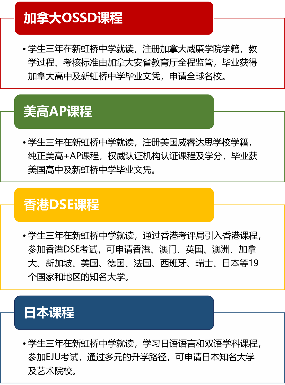上海市民辦新虹橋中學國際部先后開設加拿大OSSD、美高AP、香港...
