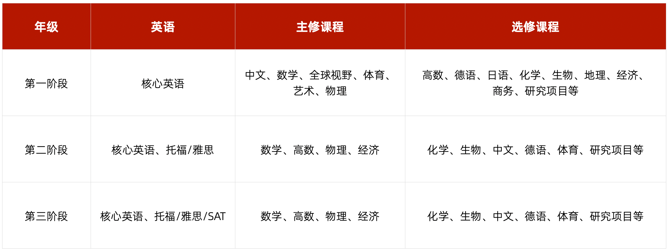 北京新亞學校的A-Level課程設置從國內(nèi)義務教育的英語語言、知識水平和認知能力出發(fā),10年級融合International GCSE課程,為學生的英語學習建立基礎,更好銜接11-12年級的A-Level課程。學生在主修課程中做好學術(shù)準備,在選修課程中探索自我,結(jié)合豐富的社團活動、體育活動等,認知全面且多元的世界,塑造未來世界公民。