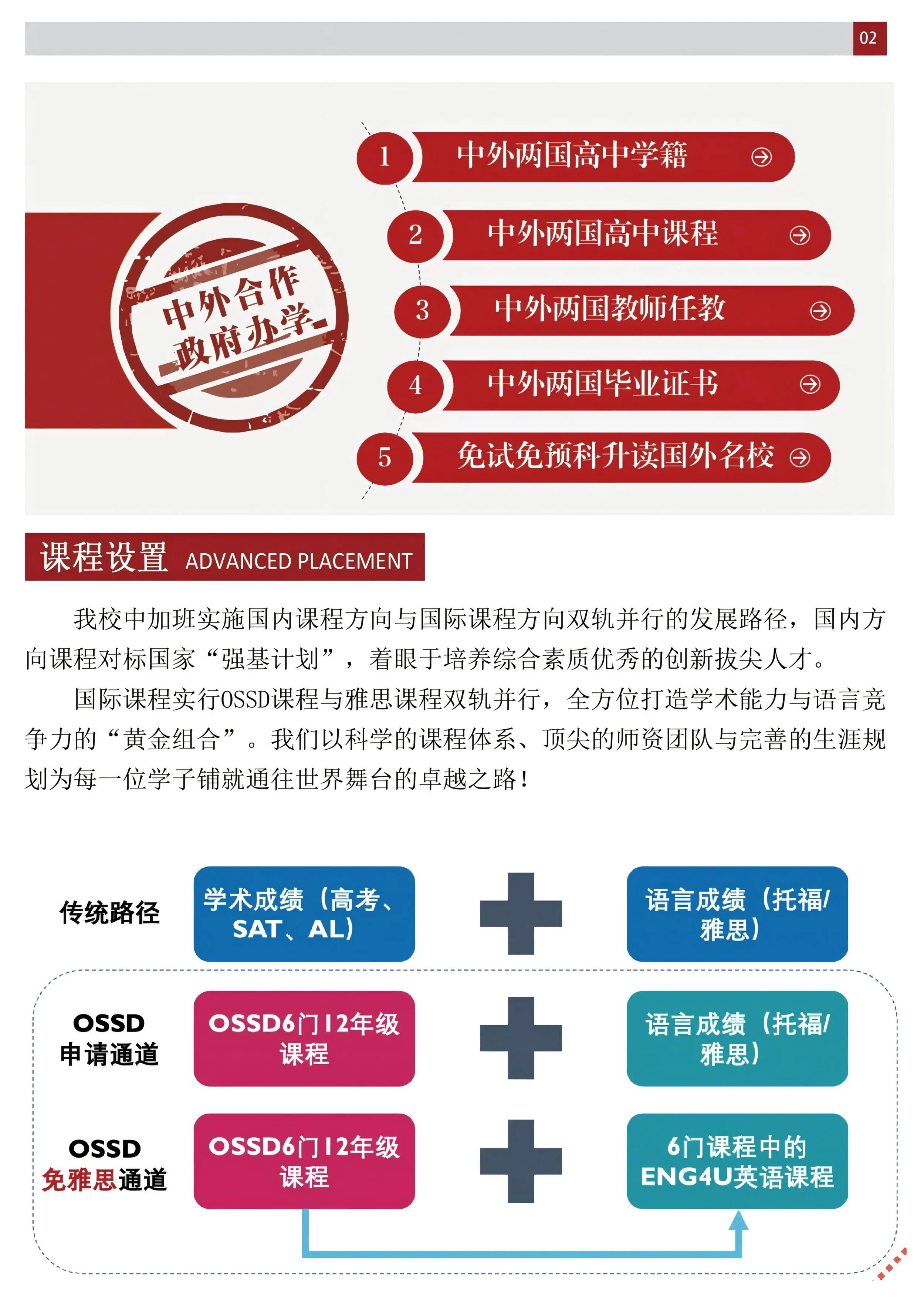 升學雙通道:高考/SAT/AL成績+語言成績,或OSSD課程免預科直升。