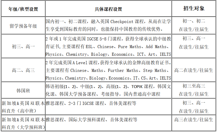 國科大(青島)附屬學校國際部創建于2020年,開設留學預備年級課程、英國劍橋CIE和牛津AQA兩大考試局的IGCSE、A Level國際課程、韓國留學本科直升班課程以及新加坡&英國雙聯本科直升項目(高中班)與本科預科課程。