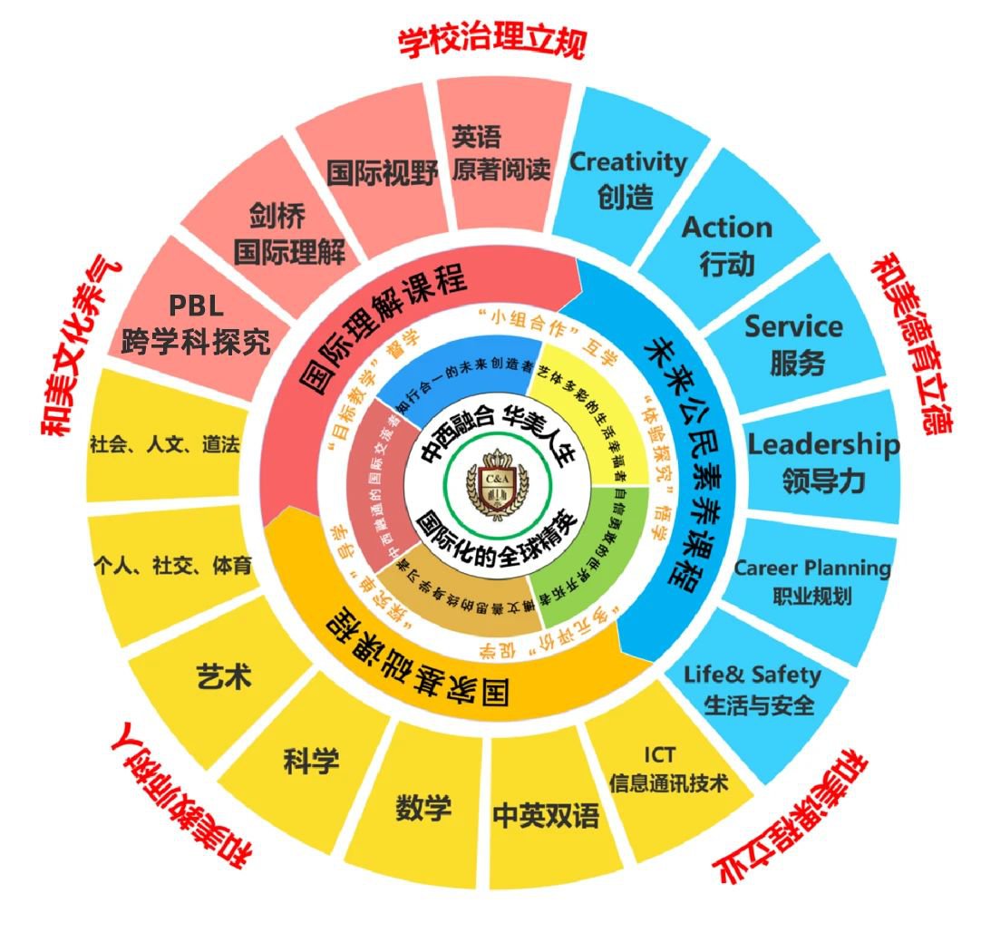 中西融合課程,國際文憑認證。國家課程,夯實基礎(chǔ),根深中華;國際課程,多元個性,美綻世界。