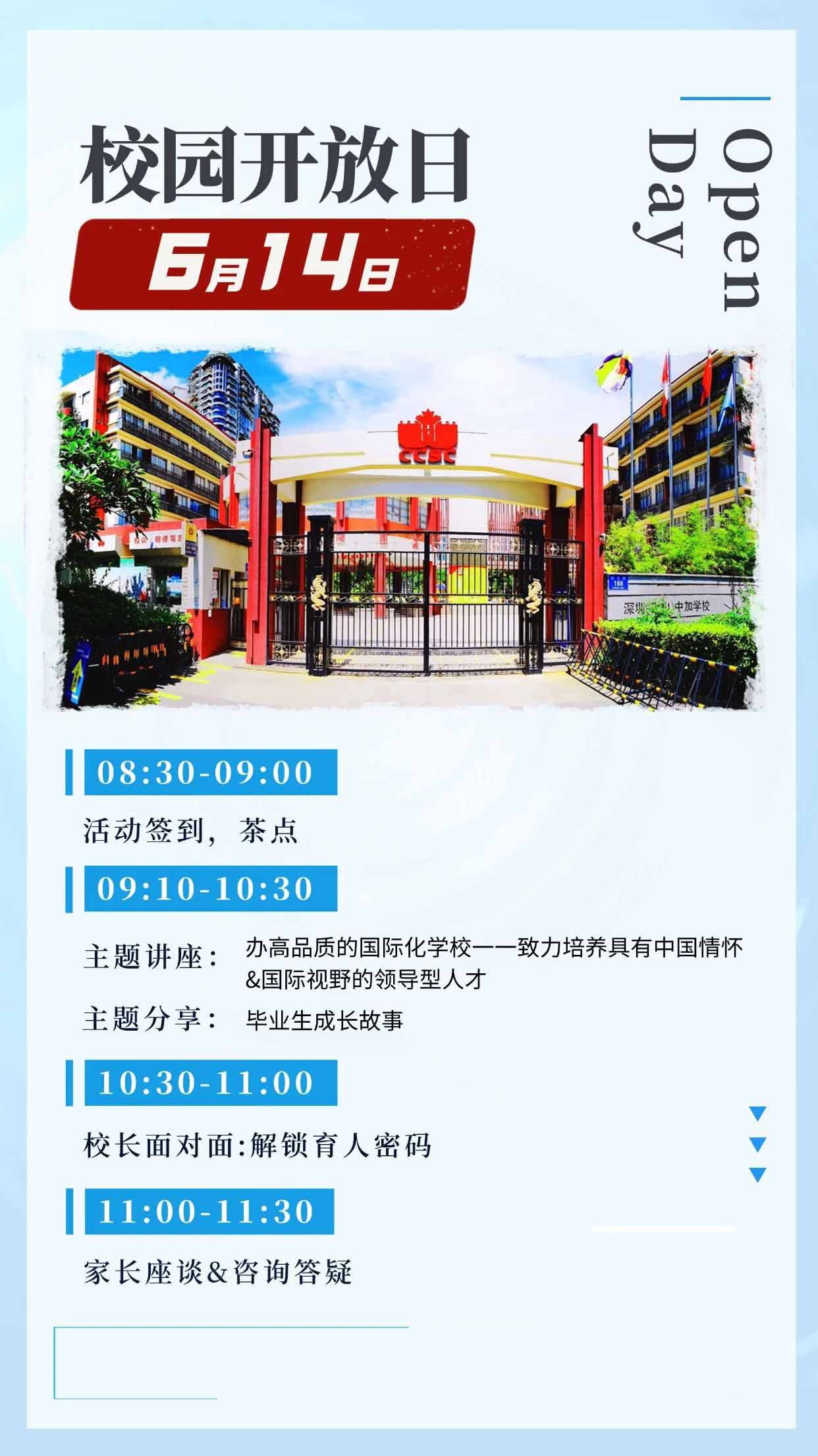 活動名稱: 校園開放日 日期: 6月14日 時間安排: 08:30-09:00:活...