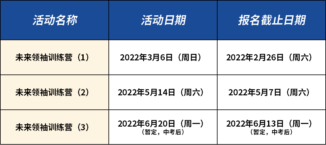 【三場(chǎng)未來(lái)領(lǐng)袖訓(xùn)練營(yíng)時(shí)間最新調(diào)整】