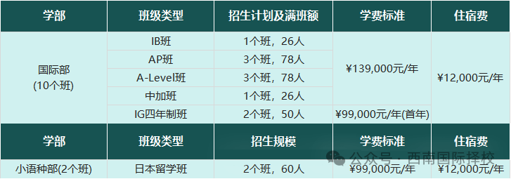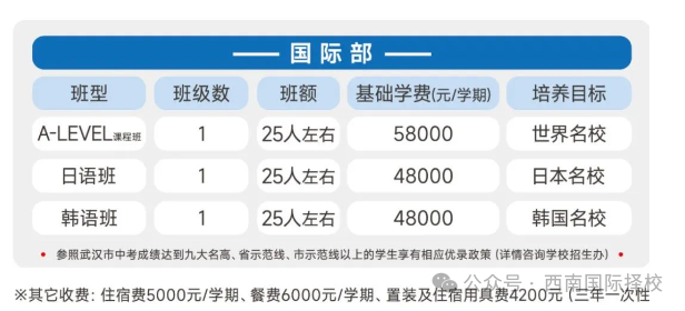 | 武昌實驗寄宿學校國際班 | 公辦 | 9.2元/年 |