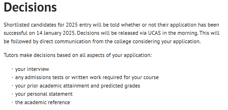 牛津大學(xué)的錄取具體參考的是以下五個部分: