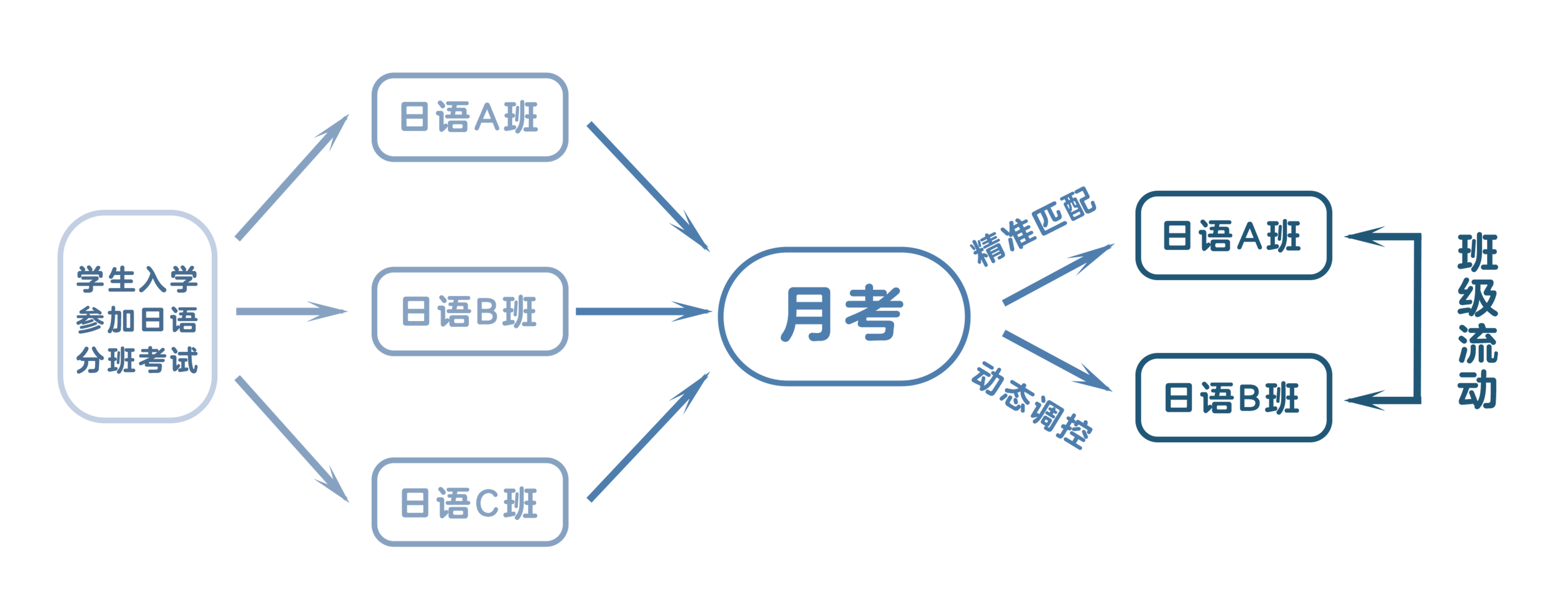 該動態分層流動機制確保學習進度暫時落后的學生有機會重新學習、復習掌握知識,體現了精準匹配,因材施教的理念。